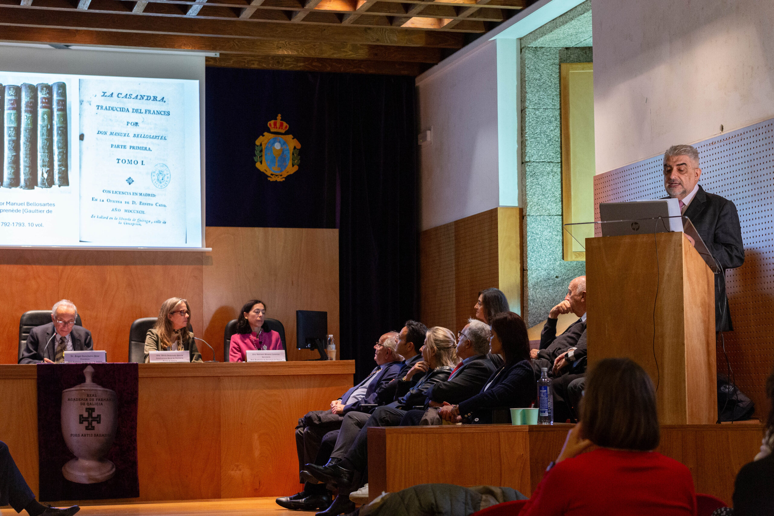 Santiago de Compostela, 25 de setembro de 2024.-A Real Academia de Farmacia de Galicia (RAFG) celebrou este mércores 25 o Día Mundial do Farmacéutico cun acto no que se puxo en valor o papel dos profesionais da Farmacia no coidado e a mellora da saúde a nivel global. Neste evento, que tivo lugar na sede da entidade no antigo hospital de San Roque (Santiago), subliñouse tamén a importancia de achegar solucións locais para abordar os grandes desafíos sanitarios e sociais que afectan á saúde das poboacións de todo o mundo. Ao acto, no que participaron numerosos académicos, asistiron a subdirectora xeral de Farmacia da Xunta de Galicia, Silvia Reboredo Garcia, o presidente da ACSUG, Juan José Neto Roig, e os presidentes dos colexios oficiais de farmacéuticos da Coruña, Lugo, Ourense e Pontevedra e representantes doutras asociacións profesionais e cooperativas de distribución farmacéutica entre outras autoridades e representacións. A xornada, celebrada en formato mixto (presencial e online), foi un espazo de encontro para o sector, no que se puxo en valor as contribucións que os farmacéuticos realizan en todos os ámbitos do sistema sanitario.