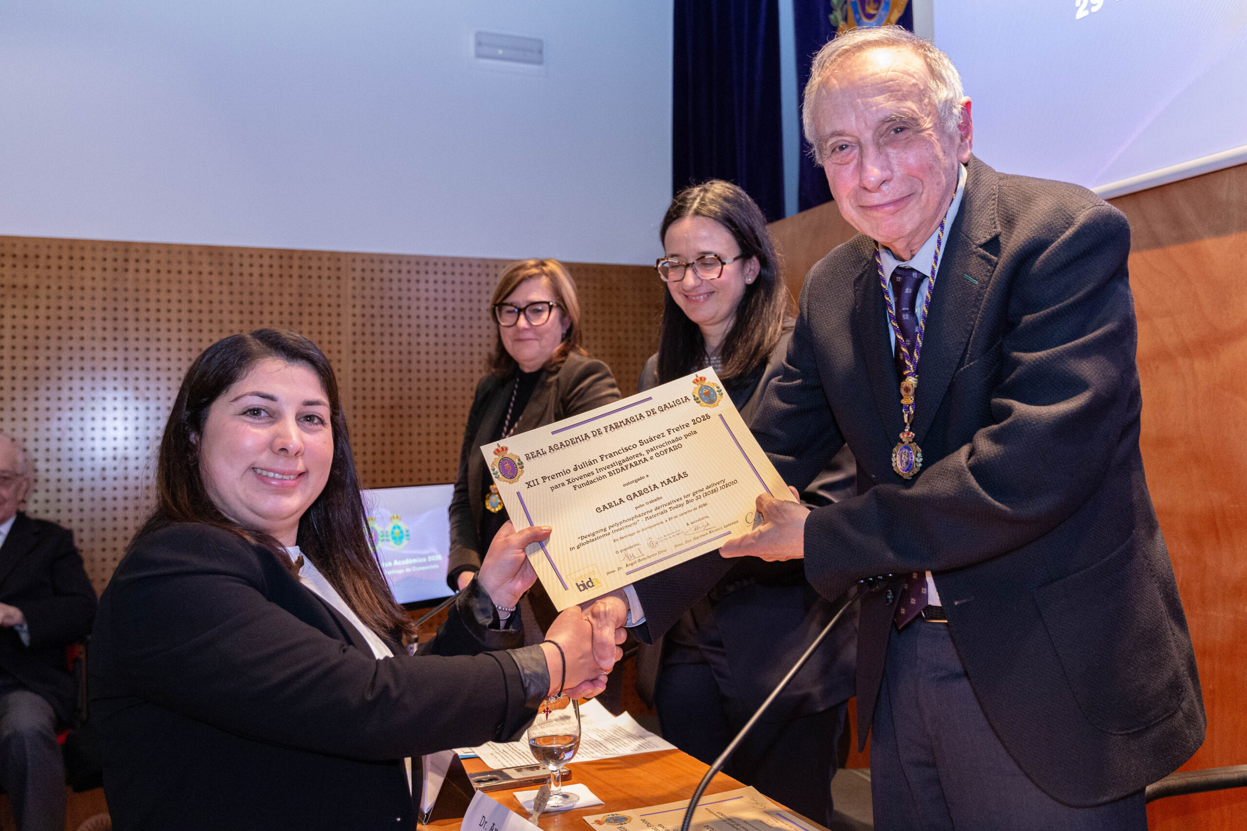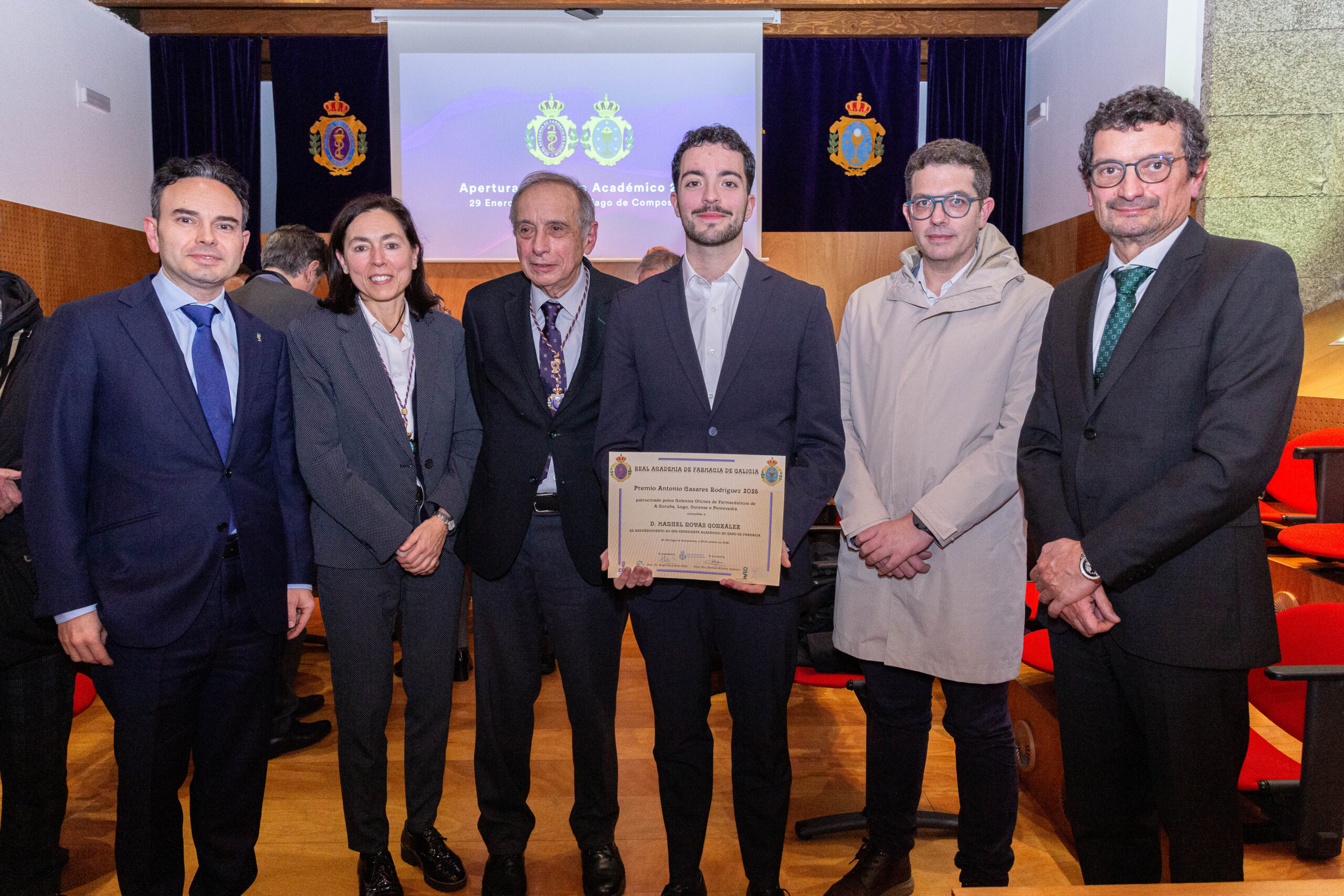 Durante el acto se entregaron los Premios de la Academia 2025, con los que la Real Academia de Farmacia de Galicia reconoce la excelencia investigadora y las aportaciones destacadas al ámbito farmacéutico hechas en Galicia por investigadores de menos de 35 años.