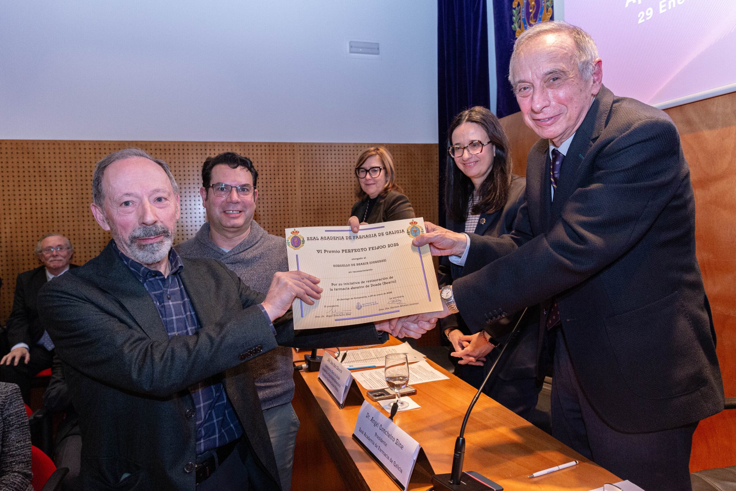 - El Concello de Beariz, en Ourense, obtiene el VI premio Perfecto Feijóo por la restauración de la Farmacia Janeiro de Doade, como iniciativa que realza la imagen y valor social de la Farmacia en Galicia.