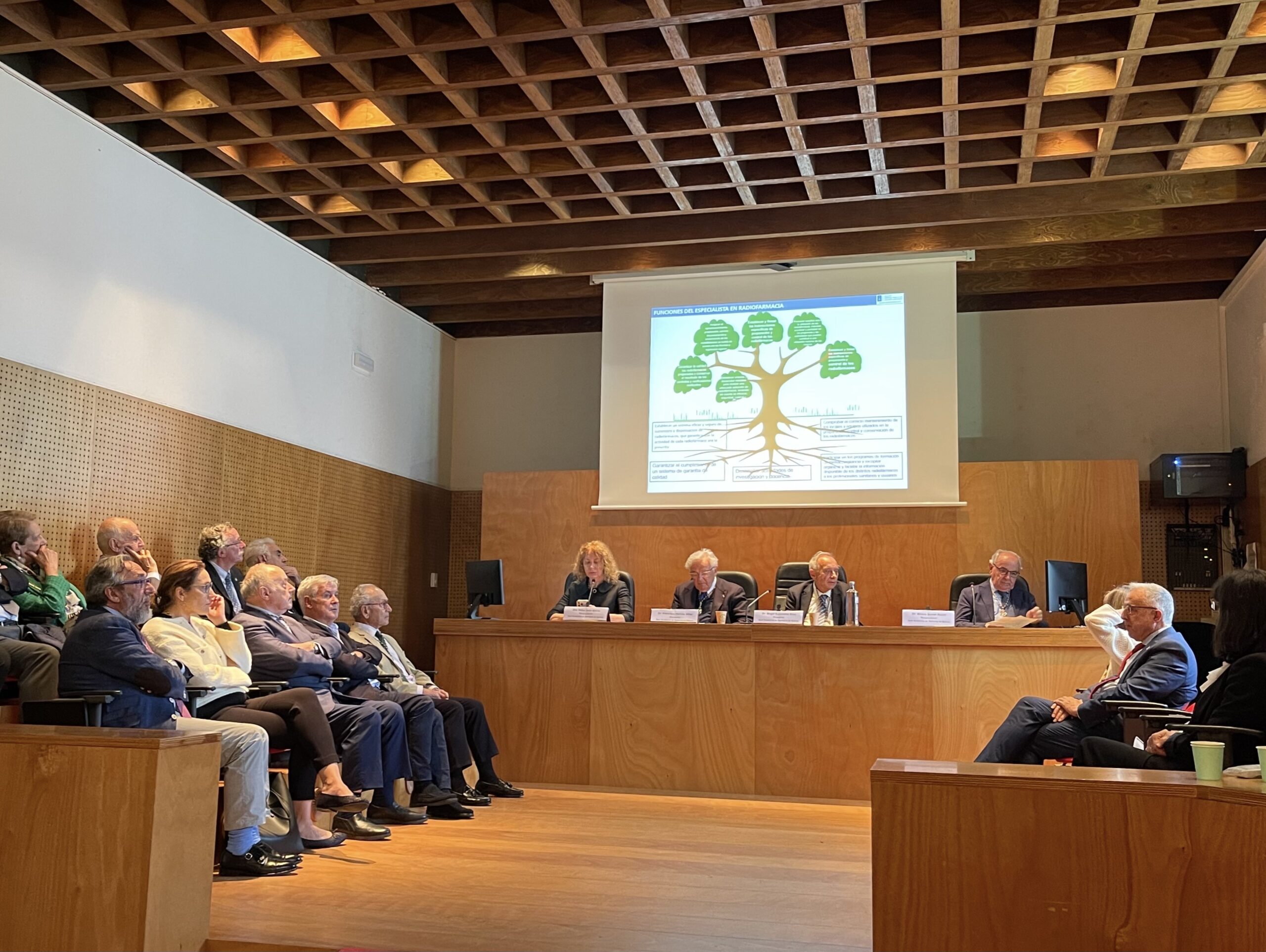 A continuación, tiveron lugar catro exposicións sobre o tema central do evento. A decana da Facultade de Farmacia da USC Reyes Lagoa abordou “A Radiofarmacia na USC”, mentres que a doutora Lucía Mª Díaz Pratas falou de “A Radiofarmacia en Galicia”.